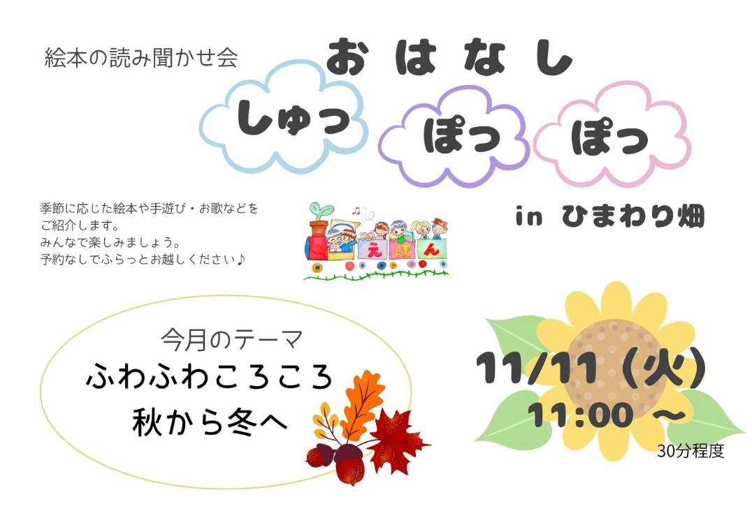 季節の絵本を沢山読んだり、子育てと絵本のお話をしています。